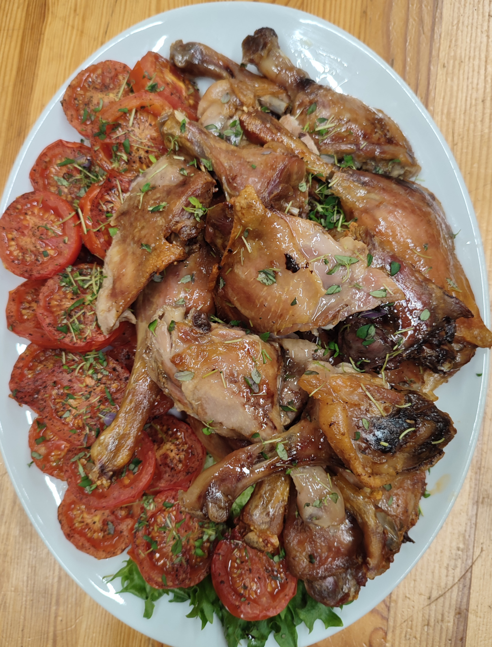 Krõbeda nahaga ja ülipehme sisuga pardikoivad, lisandiks käsitööna valminud mustsõstra – punase sibula kaste.